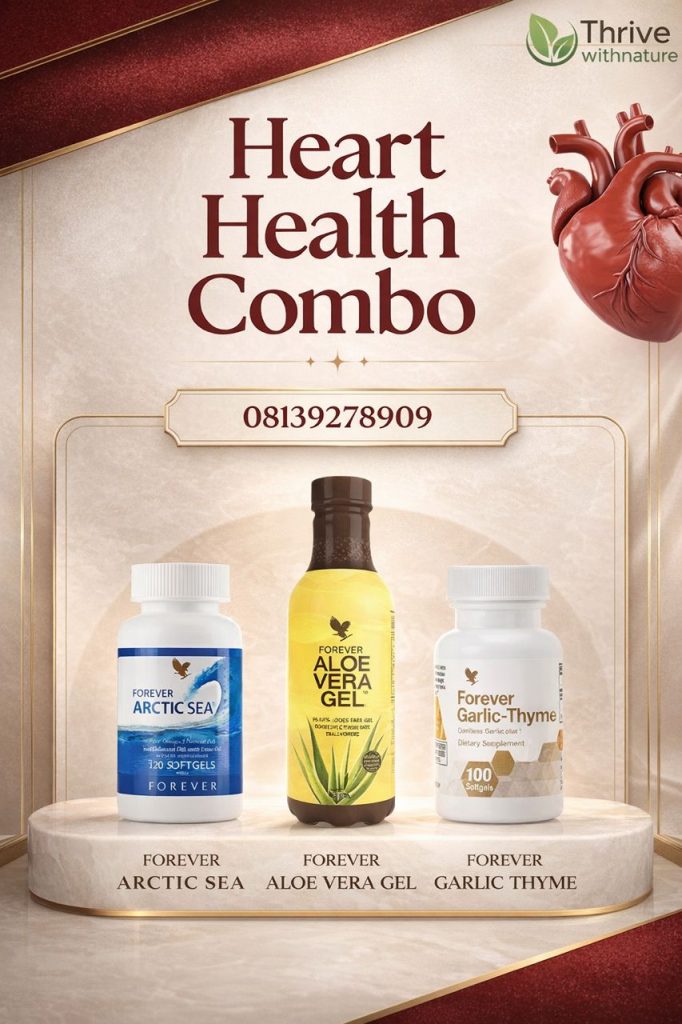 Heart Health Pack is a combination of 1 Forever Aloe Vera Gel + 1 Forever Arctic Sea + 1 Forver Garlic-Thyme that to support cardiovascular health and improve blood circulation. It’s made from 100% herbal ingredients.